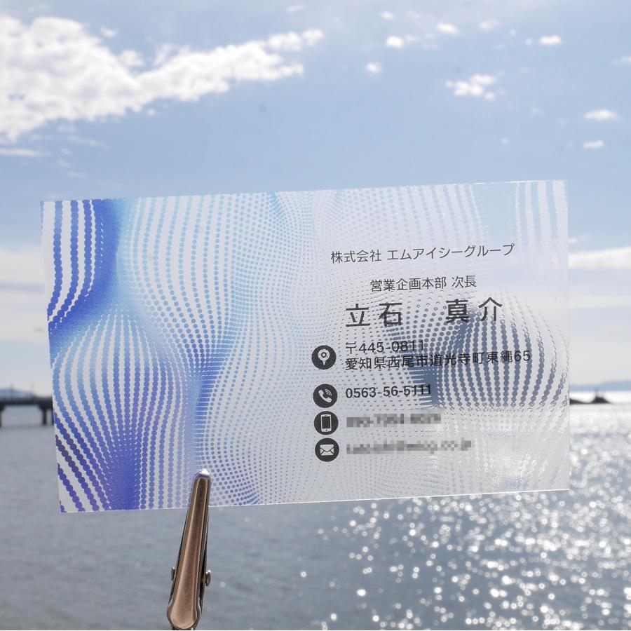 擬似エンボス印刷を施したクリア素材の名刺が、あなたのビジネスをフォローします。
