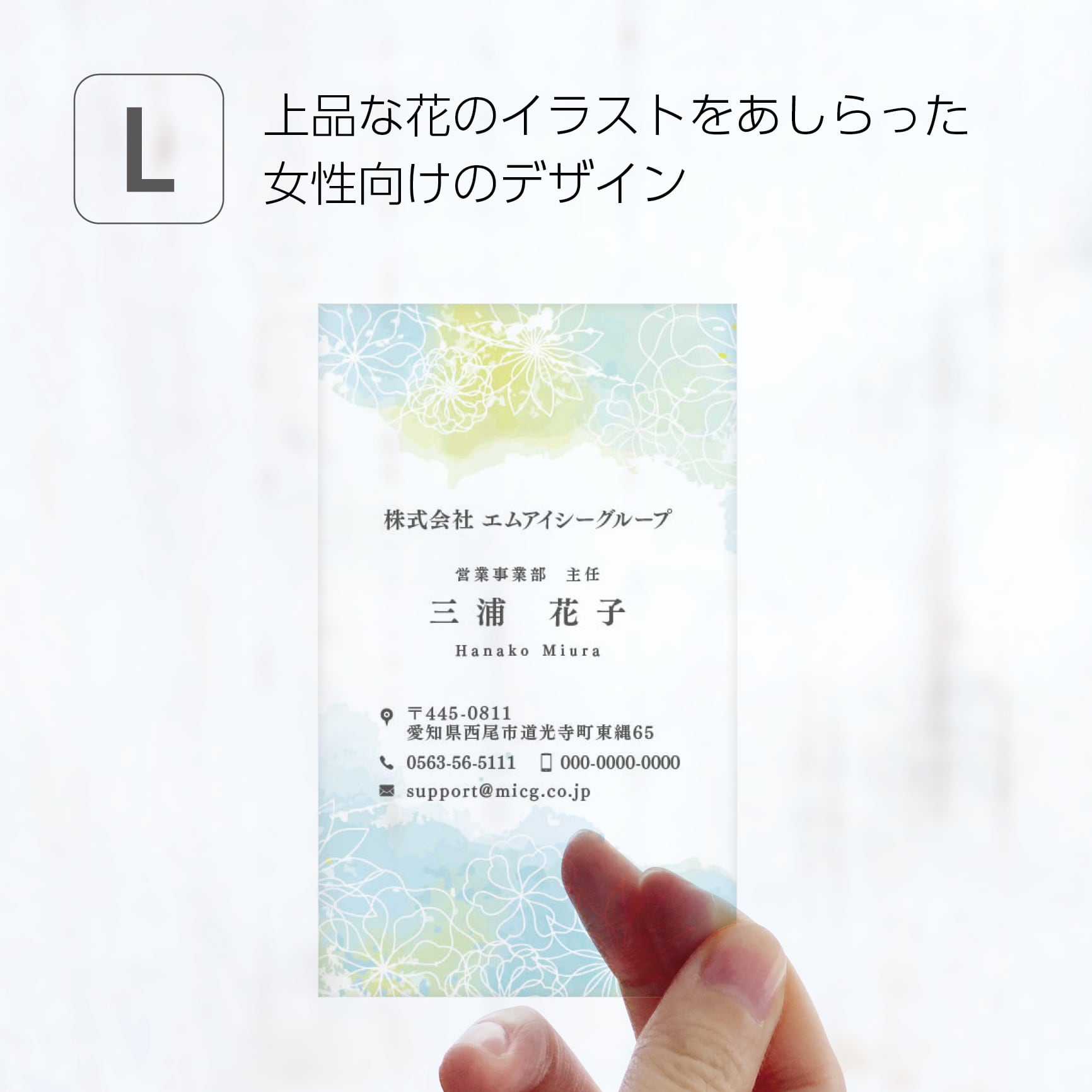 擬似エンボス印刷を施したクリア素材の名刺が、あなたのビジネスをフォローします。
