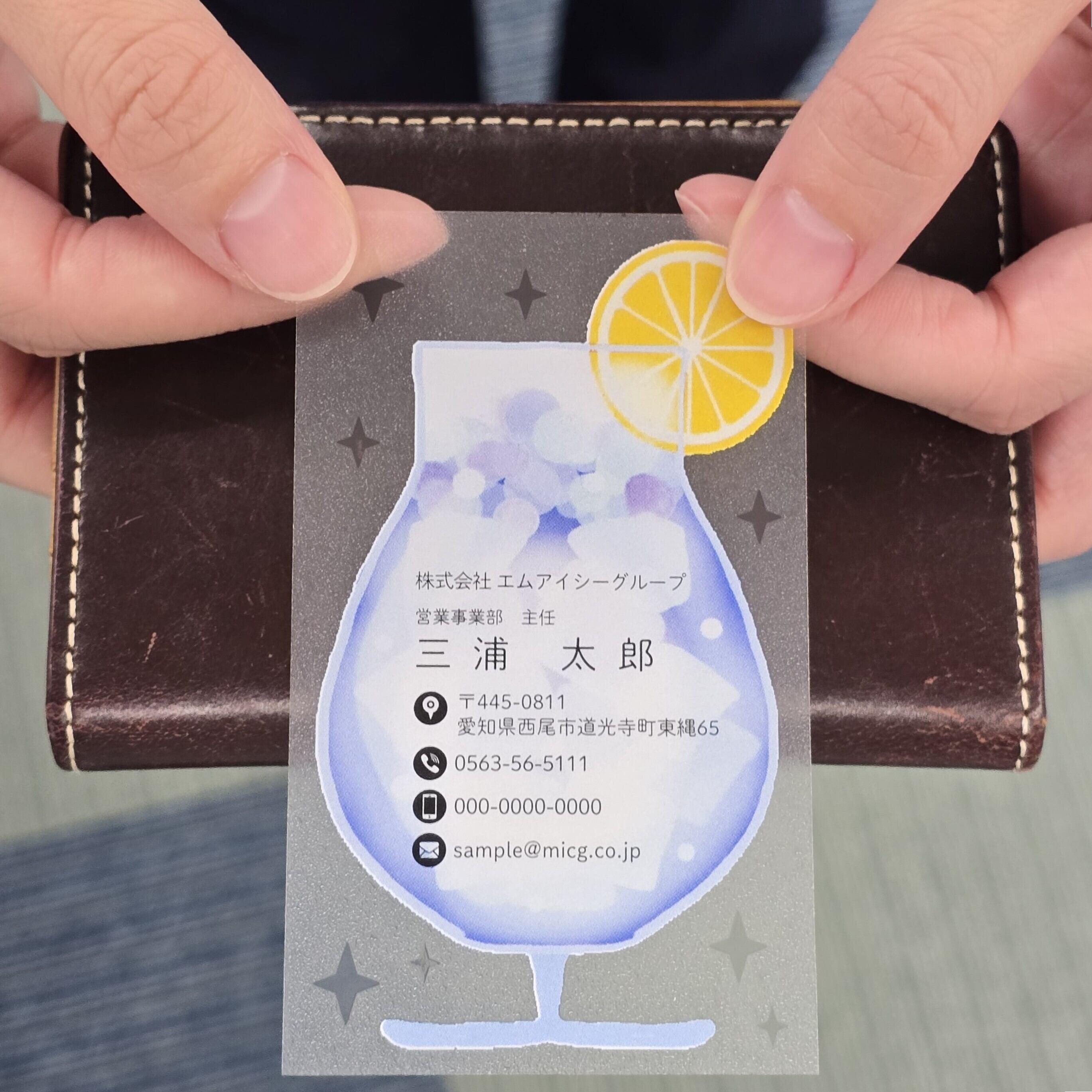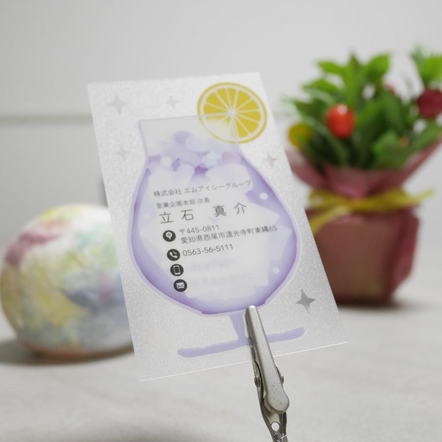 擬似エンボス印刷を施したクリア素材の名刺が、あなたのビジネスをフォローします。