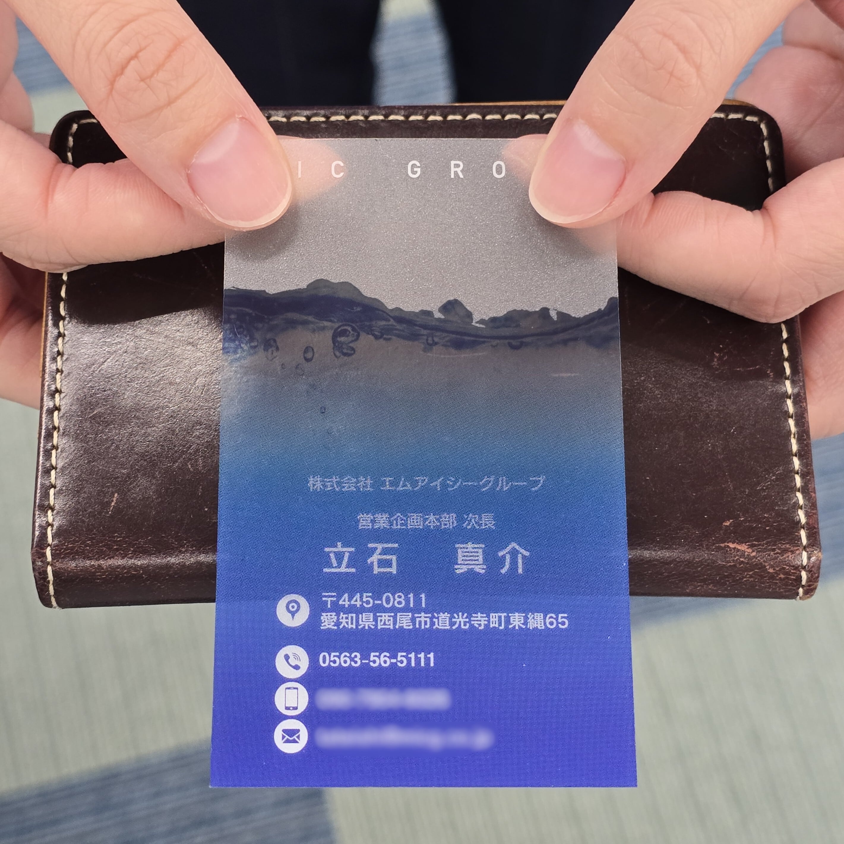 擬似エンボス印刷を施したクリア素材の名刺が、あなたのビジネスをフォローします。