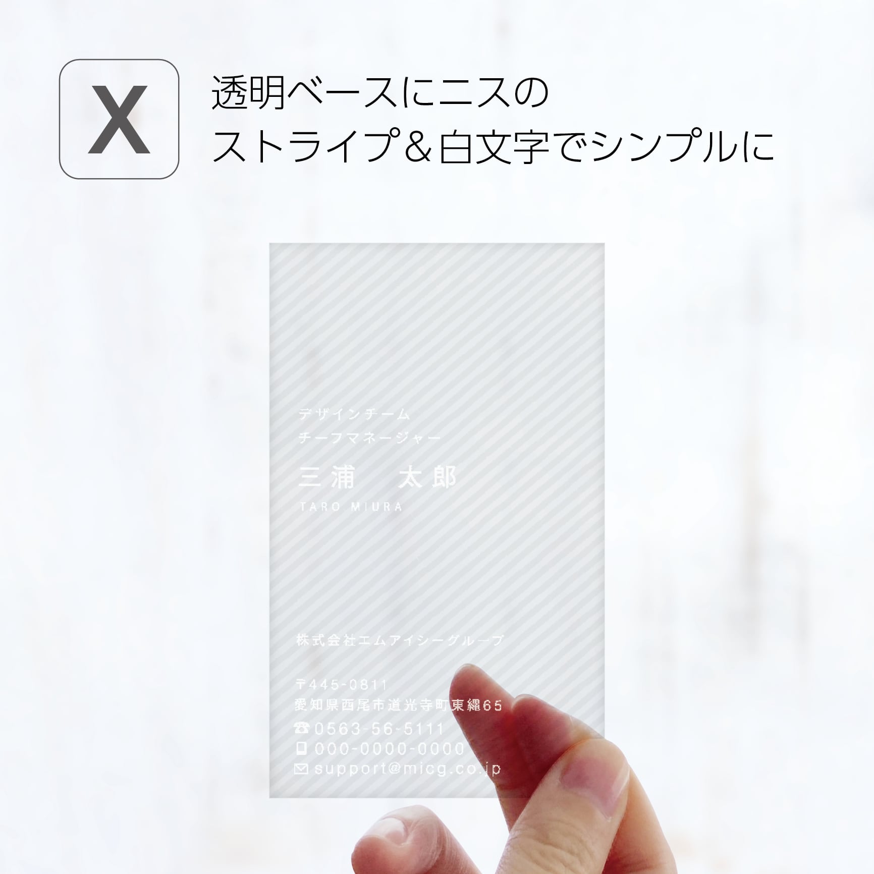 渡した相手の記憶に残る、擬似エンボス印刷 × クリア名刺。