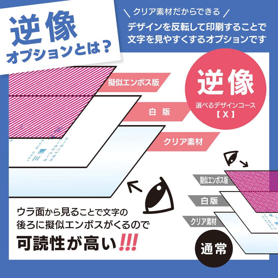 擬似エンボス印刷を施したクリア素材の名刺が、あなたのビジネスをフォローします。